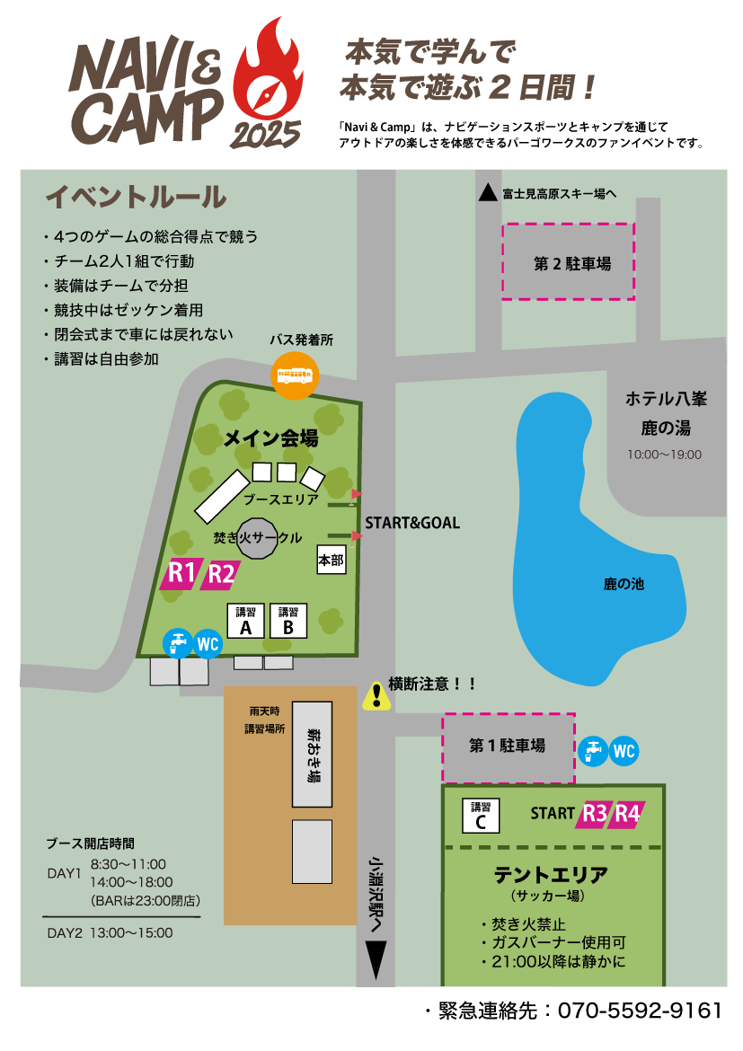 5. 怪我、疲労、低体温、脱水症状などでレースを続行できなくなった場合は、即座にレースを中断し、安全な場所で待機、場合によってはビバークを行ってください。地図には緊急連絡用の電話番号を記入してあります。