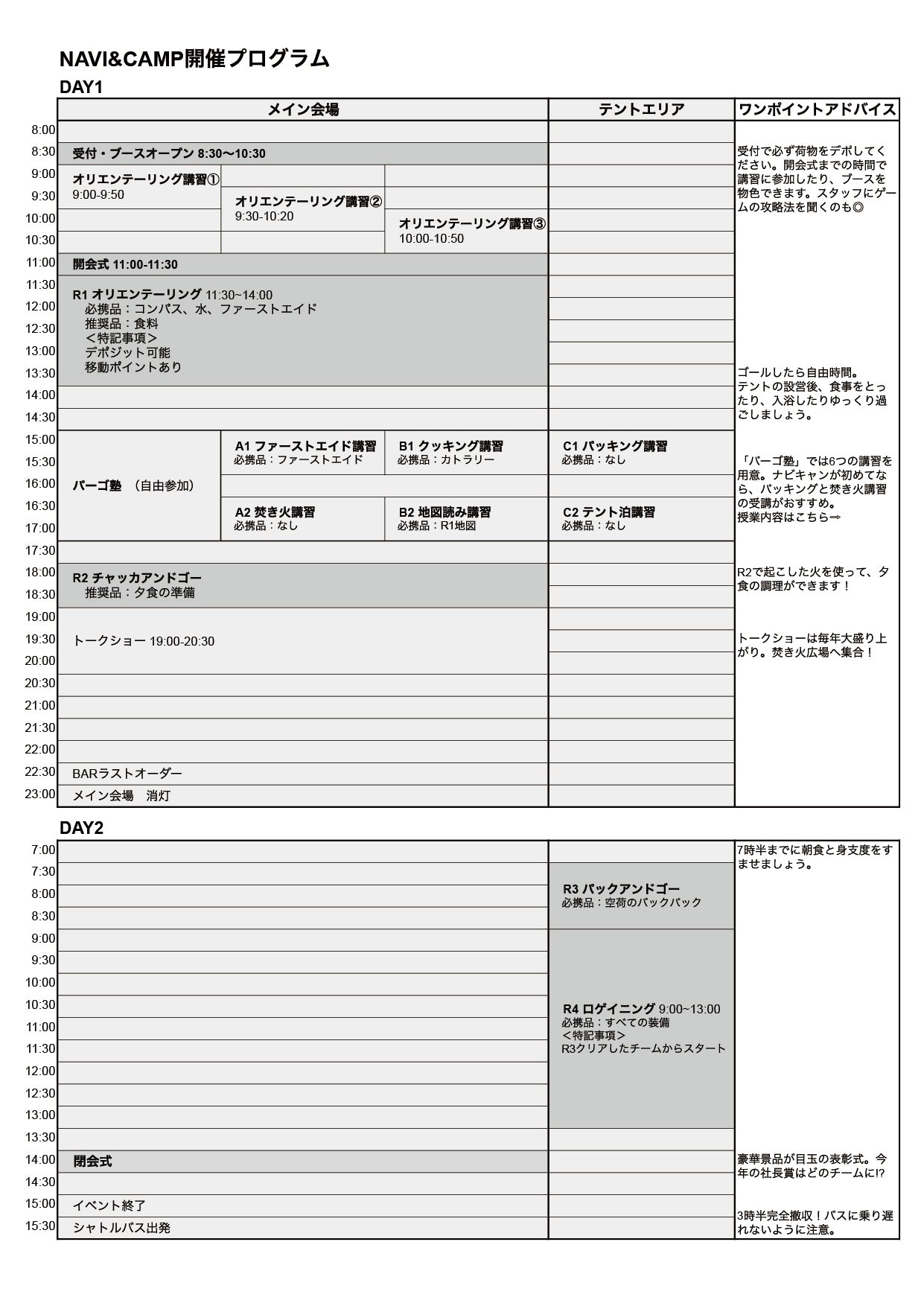 ・競技に必要なクッカー、焚き火台等は運営側が用意します。