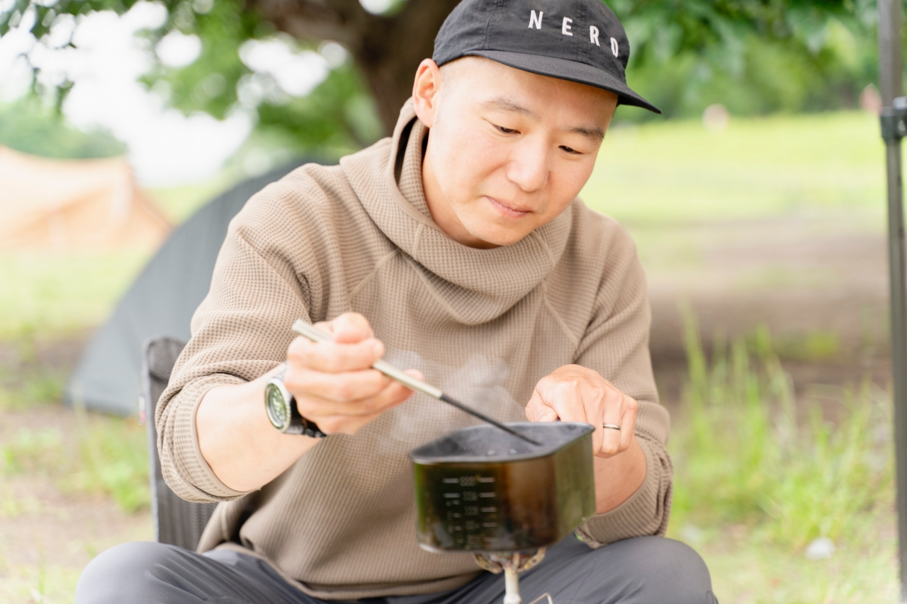 カフェオーナーのエースケさんによる、TRAILPOTとバーナーひとつで作るクッキング講習です。山に行く前に手軽に作れて美味しい「味噌玉」作りワークショップも行います。