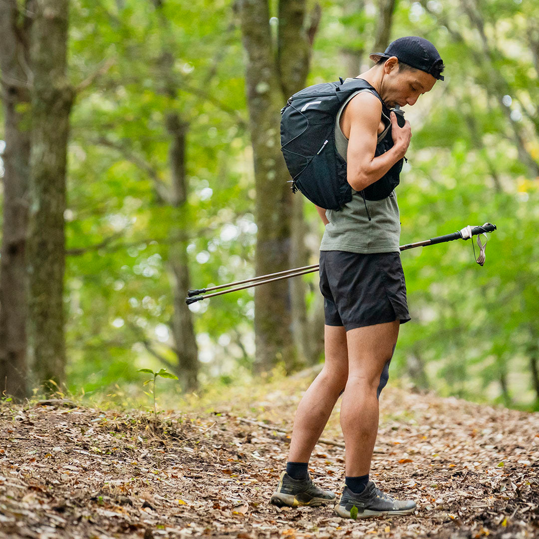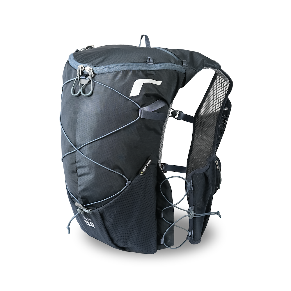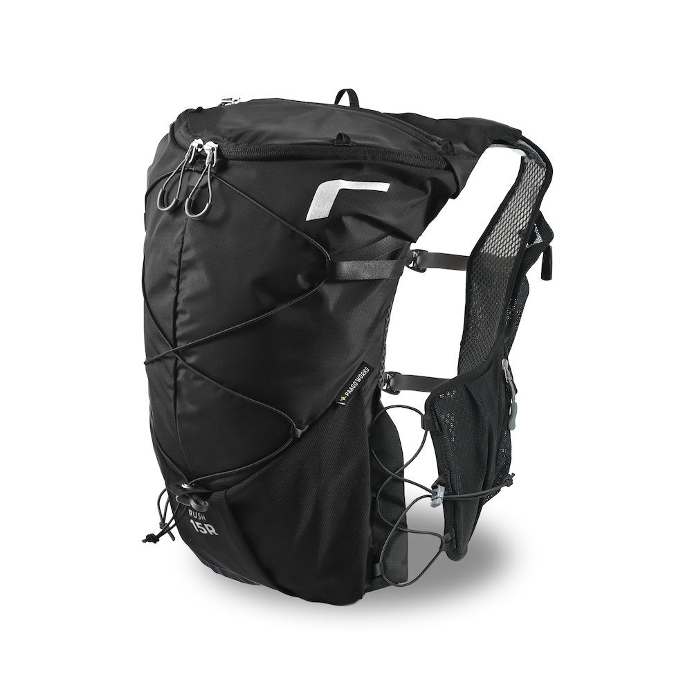 ユーザーから要望の多かった15Lモデルが登場。RUSH 11Rの背負い心地と使い勝手はそのままにサイズアップしました。高重心設計とアジャスタブルハーネスにより長時間のレースでもストレスなく使えます。
