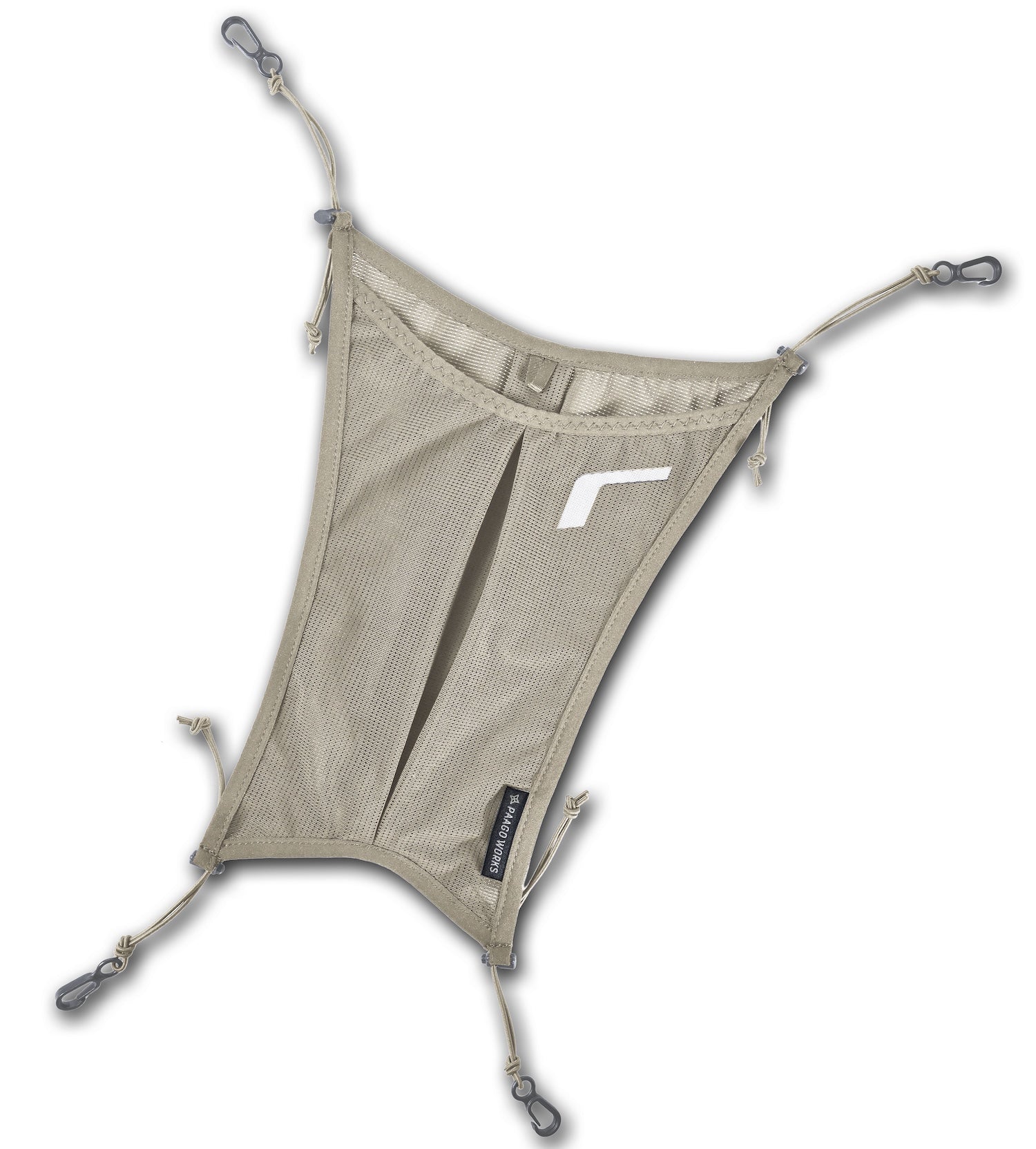 ストレッチメッシュとショックコードにより柔軟性に優れており、ヘルメットの外付けなどが可能です。(動画はRUSH11R)ロゴ部分は反射素材になっています。