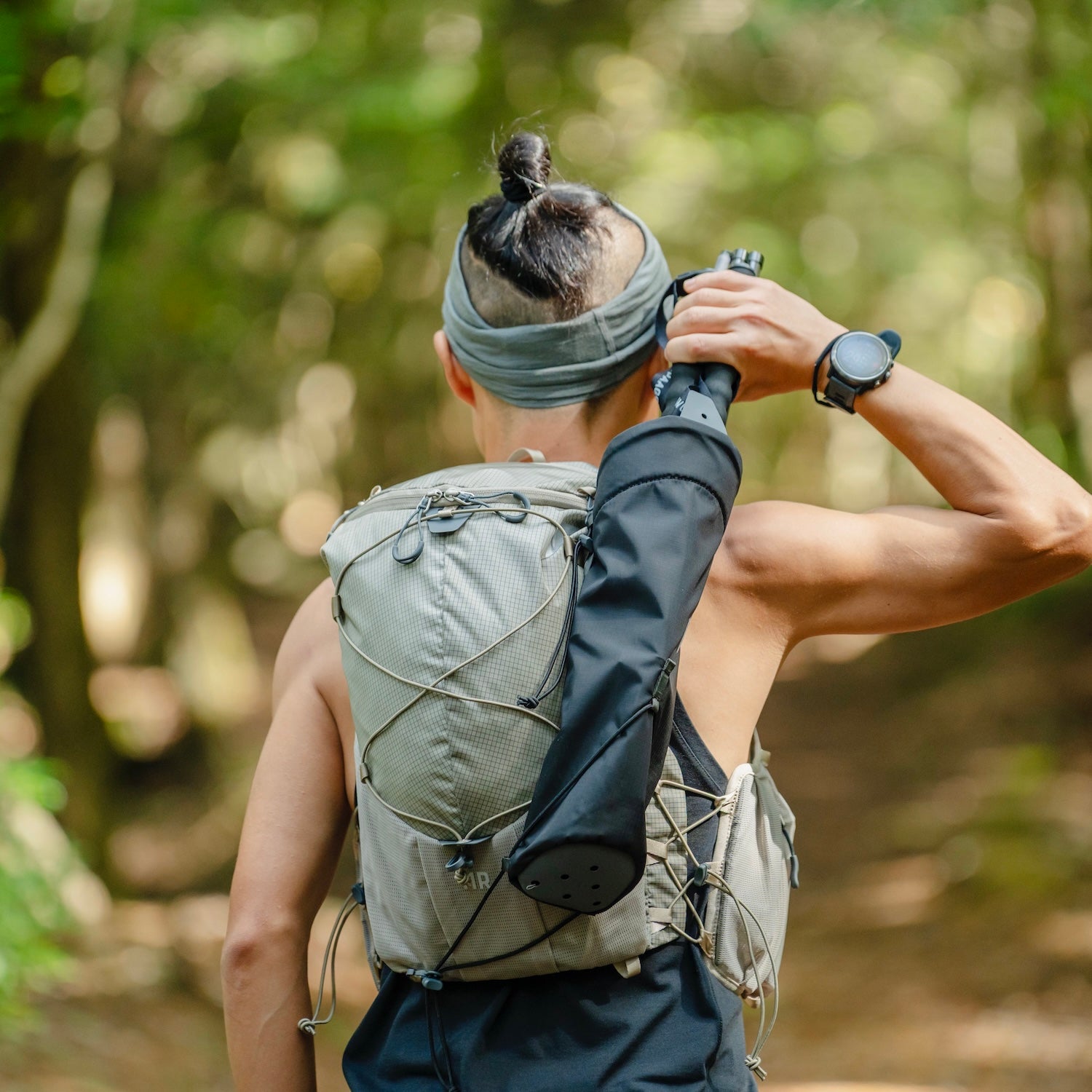 走りながらでもワンアクションでポールを簡単に取り出せる設計です。開口部と肩に当たる部分にはフォームを入れたので、揺れや擦れのストレスを軽減しました。
